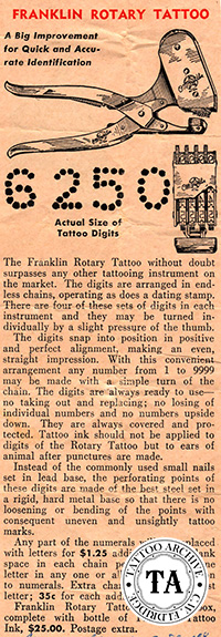 Tattoo Suppliers are always looking for more ways to market their products, and for decades have sold their machines as animal markers. With a simple modification to the tube assembly where a fingertip switch replaces the foot switch, these machines could be sold to veterinarians, medical labs, and racehorse owners. It is necessary to modify the switch because tattooing is often performed in a barnyard and the foot switch would not work.