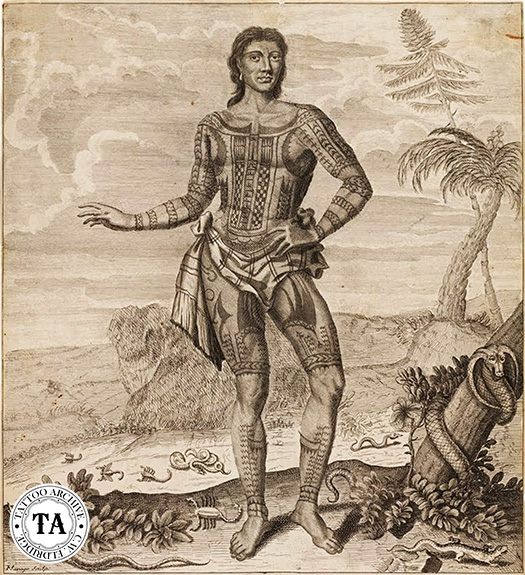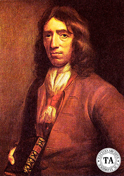 William Dampier was an explorer, adventurer, privateer and the earliest known entrepreneur to promote a tattoo attraction. Dampier brought Prince Giolo to London from the South Seas in 1691, creating such a stir that even the King and Queen demanded to see him. One of Dampier's many books, 'Discourse on Wind' became a classic in meteorology. It is unknown if Dampier acquired any tattoos during his travels.