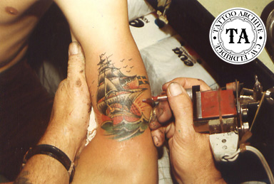 In 1947 when he bought Tato Jack’s shop, Ole moved into one of the oldest tattoo shops in the world--the already famous No.17 Nyhavn in Copenhagen. Ole said there had been tattooing at that location for 100 years! Ole himself spent 40 years at that shop and in that time became a well-respected and beloved artist.