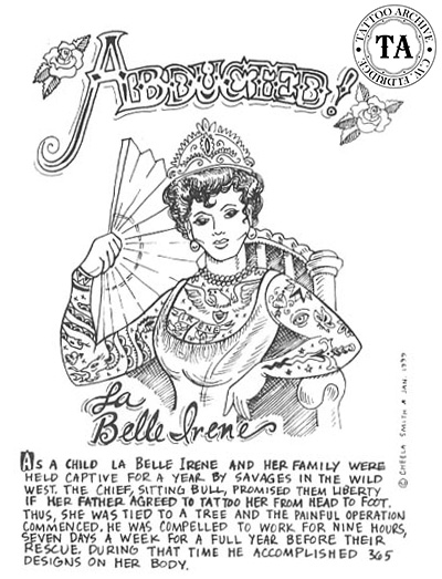 La Belle Irene was the stage name of Irene Woodward often refereed to as "The Original Tattooed Lady".