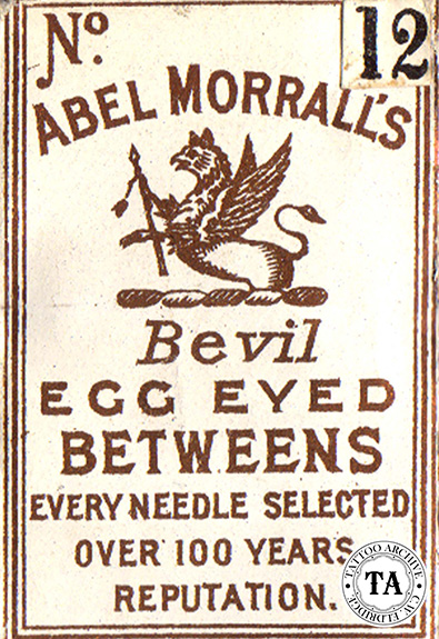 Abel Morrall's is one of the great names in needle making. This company was one of 60 factories located in "the needle capital of the universe" Redditch, England which was about 120 miles north of London. It had produced needles since the late 1700s. At one time these various factories were producing 2.5 million needles a week! Two hundred years later the factories of Redditch still churn out almost 70% of the world's needles. Other band names from this area were R.J. Roberts, H. Milward & Sons, James Smith & Son and S. Thomas & Sons. The quality of English needles have made them a favorite with tattooists around the globe.