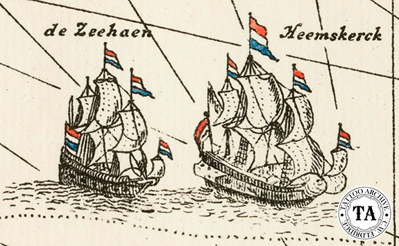 The Zeehaen and the Heemskerki were the ships under the command of Abel Janszoon Tasman (1603-1659) when he visited Tasmania and New Zealand in 1642.